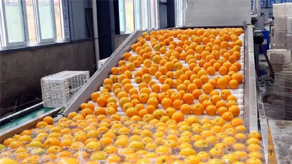 走进洗果厂车间,自动化生产线正飞速运转,流水线旁的工人们各司其职、有条不紊。默科特橘橙、纽荷尔脐橙一个个圆润鲜亮,从清洗、烘干、分级,到封装、码箱,每一道工序都严格把控、精益求精。车间外,多辆集装箱货车一字排开,工人们身着工装,手脚麻利地将封装好的鲜果搬上车,阵阵柑橘清香混杂着忙碌的气息,勾勒出新春前夕鲜果出海的繁忙画卷。